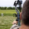 See a flashing pin above the aiming point that shows the estimated apex of your arrow’s flight.